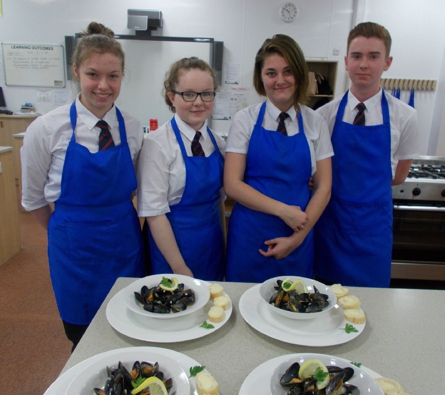 Francesca, Abigail, Chaya and Connor demonstrate their knowledge, understanding and skill producing a restaurant quality shellfish starter, containing a number of high risk ingredients in 30 minutes.