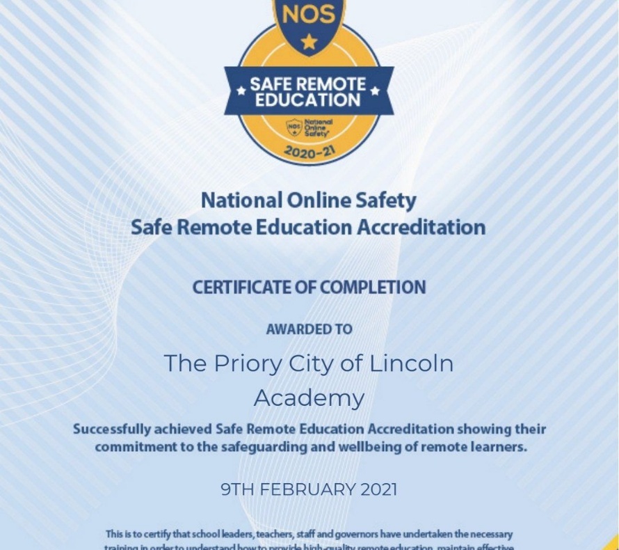Lincoln Academy is now also a National Online Safety Certified School - see certificate below