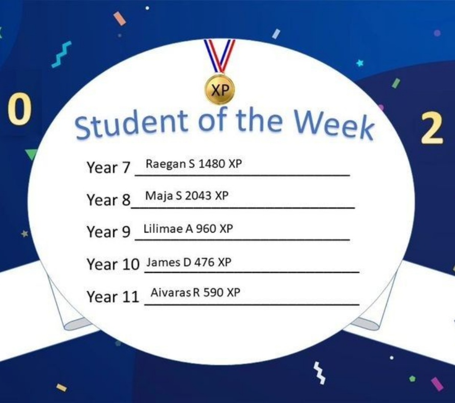 Congratulations to students for the highest average XP per student this week and to all our students with the top XP in their year group.