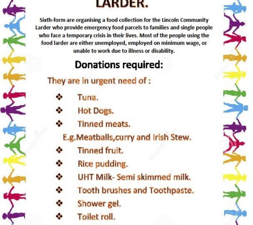 Students and staff are donating food and toiletries for the Lincoln Community Larder, up until the end of term..