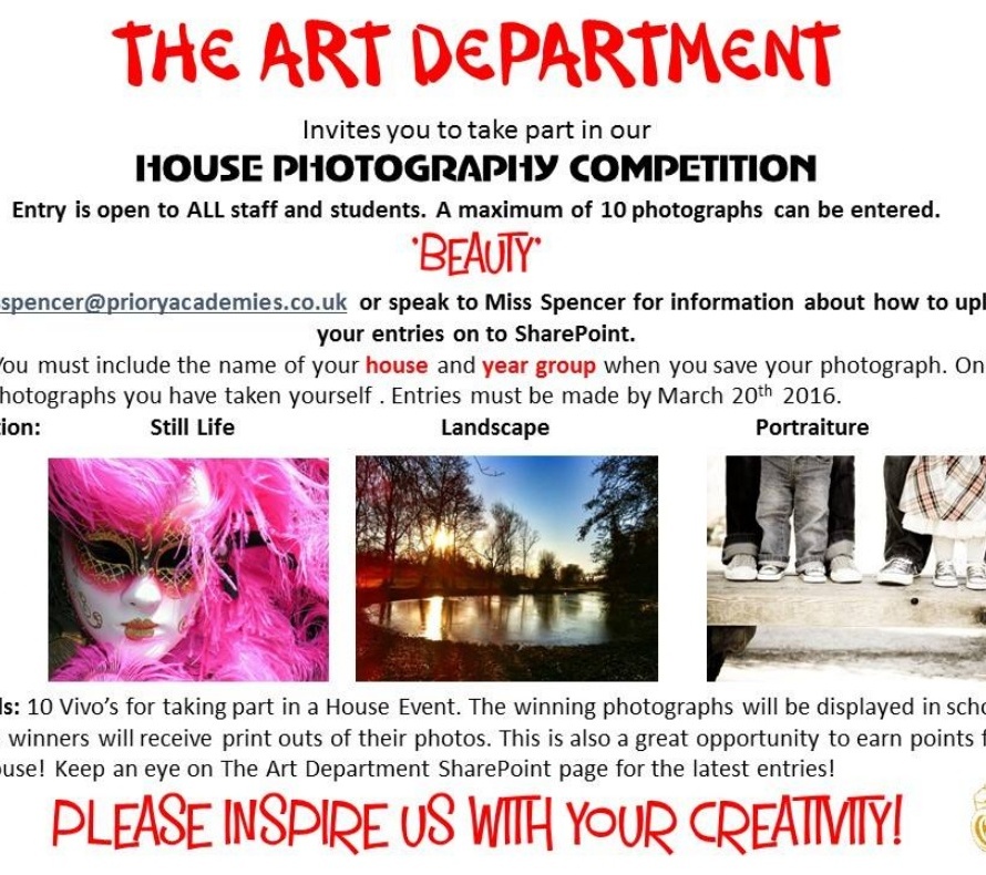 The House Photography competition has been launched.  Entries must be in by 20th March 2016.